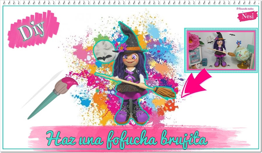En el vídeo de hoy te enseño como realizar una fofucha brujita paso a paso y además te voy a enseñar un truquito que a mi me ha venido genial descubrir para que a la hora de forrar las bolas de porexpan no se nos formen ni pliegues ni arruguitas.