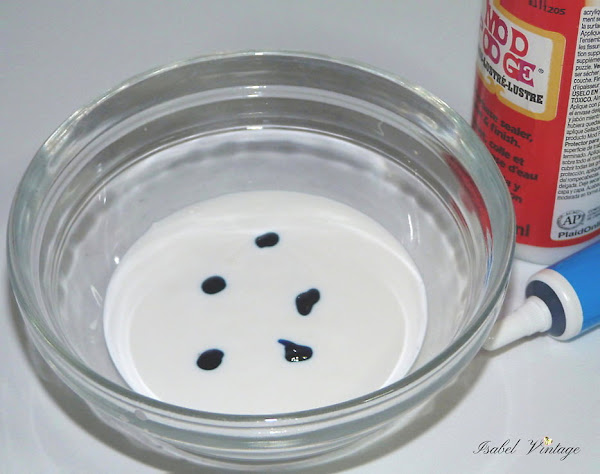 La proporción es de 1 ó 2 gotas de colorante alimentario por cada cucharada sopera de mod podge.