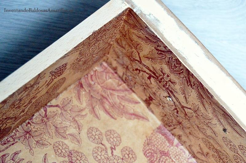 Para usarlo hay que tener en cuenta que se pega muy bien y que no salen arrugas. Una vez que hemos recortado el papel podemos humedecerlo para que así podamos doblarlo y manipularlo más facilmente. Con cuidado, pero sin miedo. Es mucho más difícil que se rompa que una servilleta, ya que es mucho más grueso. Este papel queda genial para forrar todo tipo de muebles, libretas, libros y objetos pequeños. Pero no se puede usar para hacer transfer, ya que nos quedaríamos con el papel en la mano cuando tratemos de retirar la celulosa.