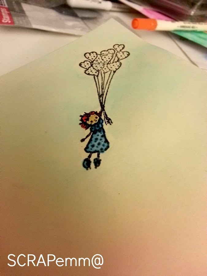7. Una vez tenemos el fondo que queremos ya terminado vamos a colorear los sellos. Para ello, utilizaremos la misma técnica que antes así como pintaremos con el Distress Marker directamente sobre el propio dibujo, consiguiendo diferentes tonalidades y sombras en el dibujo final.