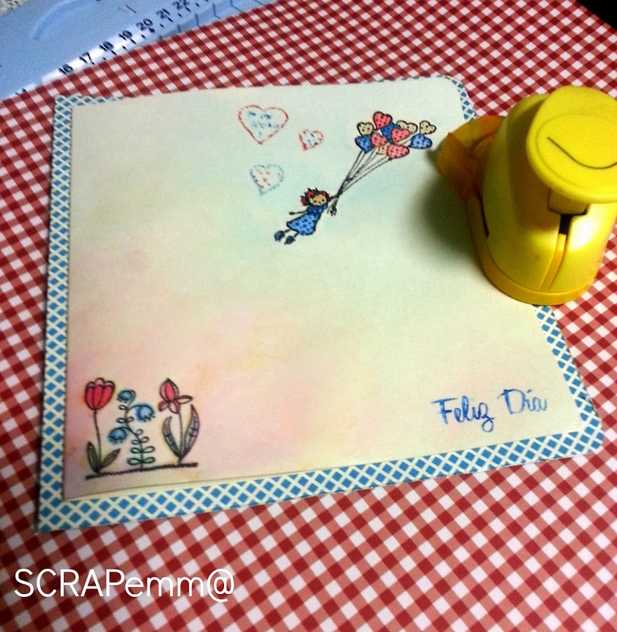 8. Ahora vamos a por la tercera forma en que hoy os enseñamos a utilizar estos Distress Marker pintando directamente sobre un sello con palabra que servirá para ir cerrando nuestro trabajo. En mi caso elegí un sello de ConSal&Pimienta que dice Feliz Día.