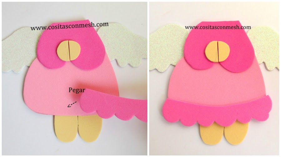 2.- Pego las alas en foami blanco diamantado, estas irán por atrás.