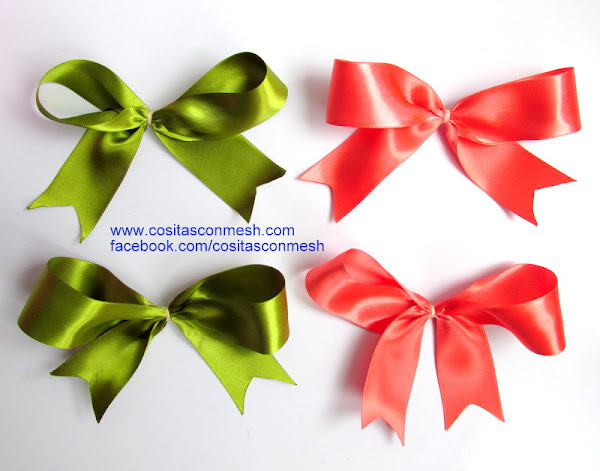 6.-Estos son todos los lazos que ya hice, serán 4 en total, 2 de cada color.