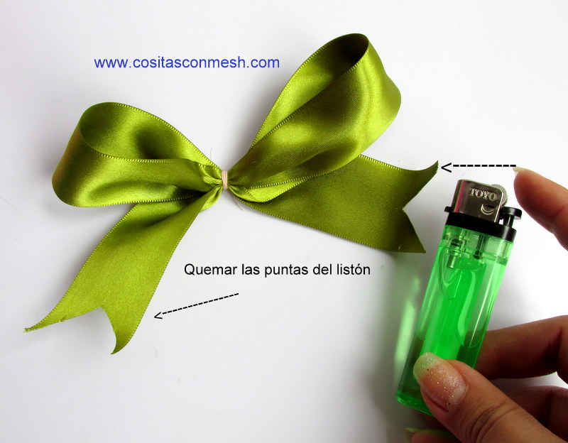 5.- Cortamos las puntas del listón, y con encendedor quemo las puntas para que no se deshilachen o se vean feos.