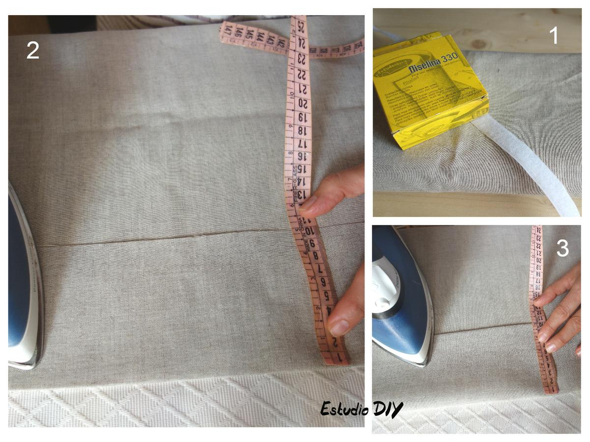 Para ello marcamos una doblez de 2 cm. en todo el ancho del estor que fijamos con la ayuda de la plancha (foto 1).