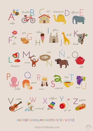 Hoy he seleccionado un alfabeto para que vuestros hij@s en edad preescolar aprendan el abecedario, lo tenéis disponibles en varios tamaños además de tres idiomas, Español, Francés e Inglés. También lo podéis utilizar para decorar su habitación, os quedará genial.