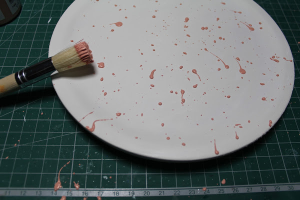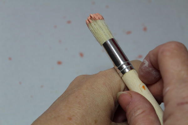 El método es el siguiente: cargar el pincel de pintura y darle golpecitos para que la pintura caiga de forma irregular en forma de gotas de distintos tamaños y formas.