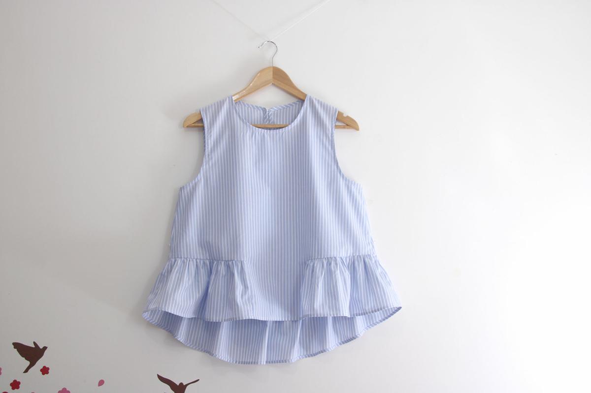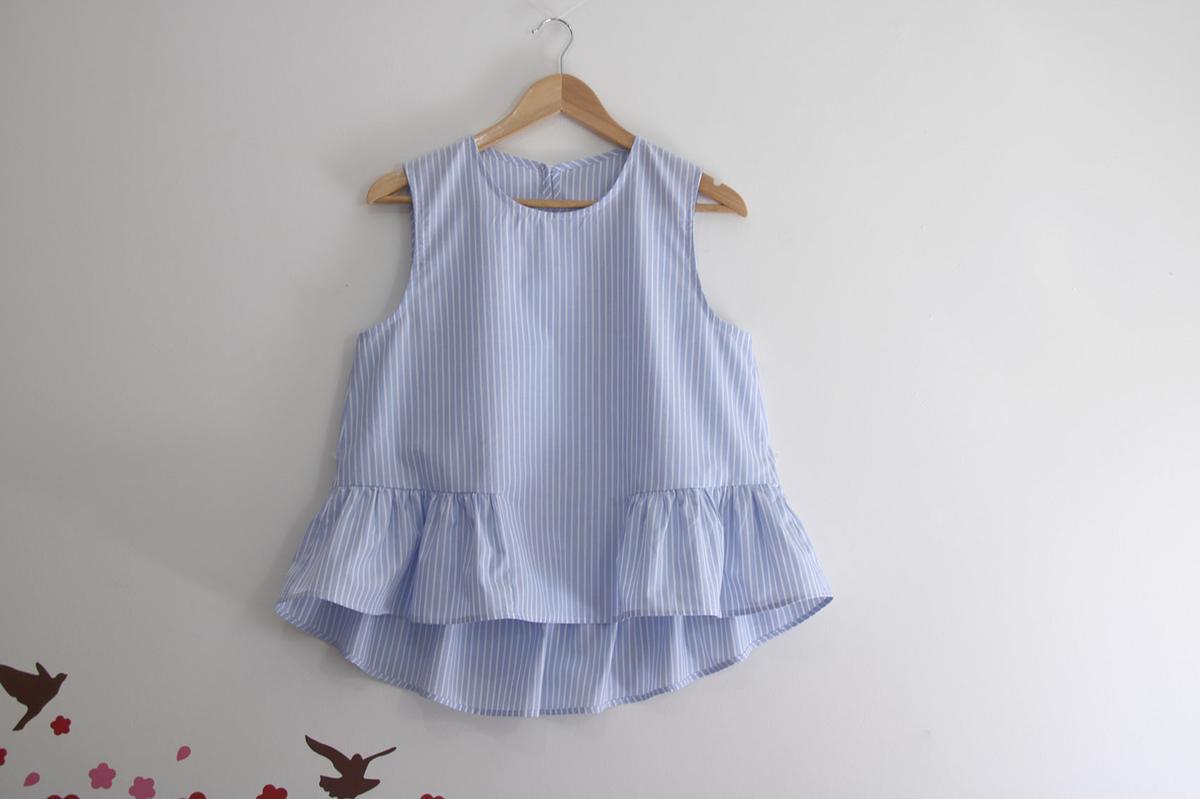 La blusa que hoy comparto es una blusa sencilla, de las que se llevan esta temporada, con volantes y la tela camisera en azul. Es muy muy fácil de hacer y no tiene ningún tipo de complicación a la hora de confeccionarla!!!!