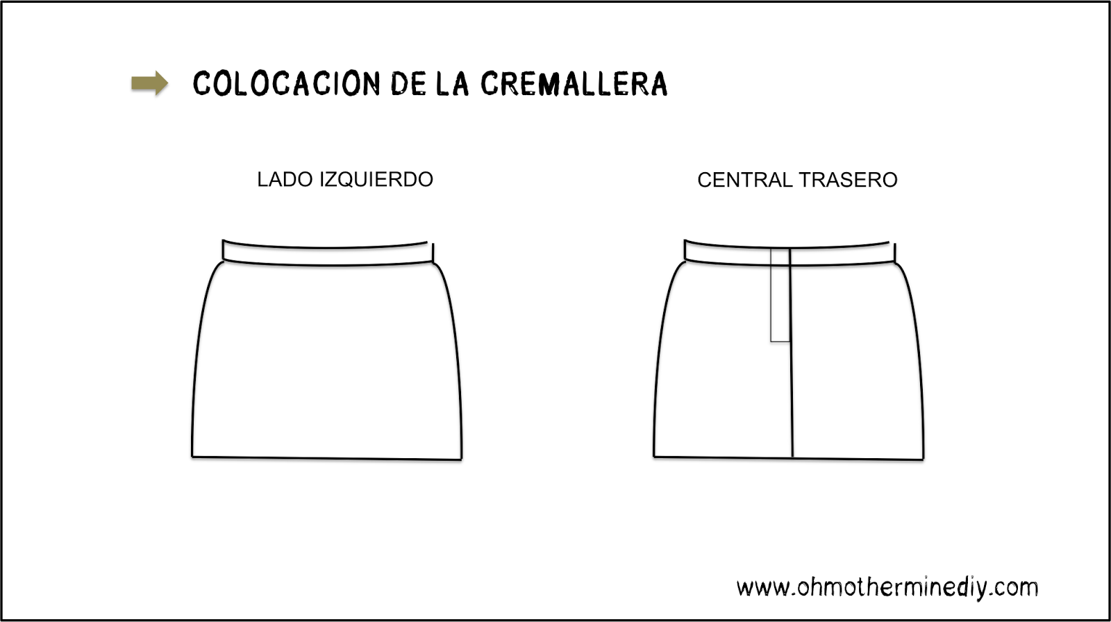 LA COLOCACIÓN DE LA CREMALLERA. La cremallera normalmente se coloca en dos posiciones: en la parte superior del costado izquierdo y en la parte superior central de la parte trasera.