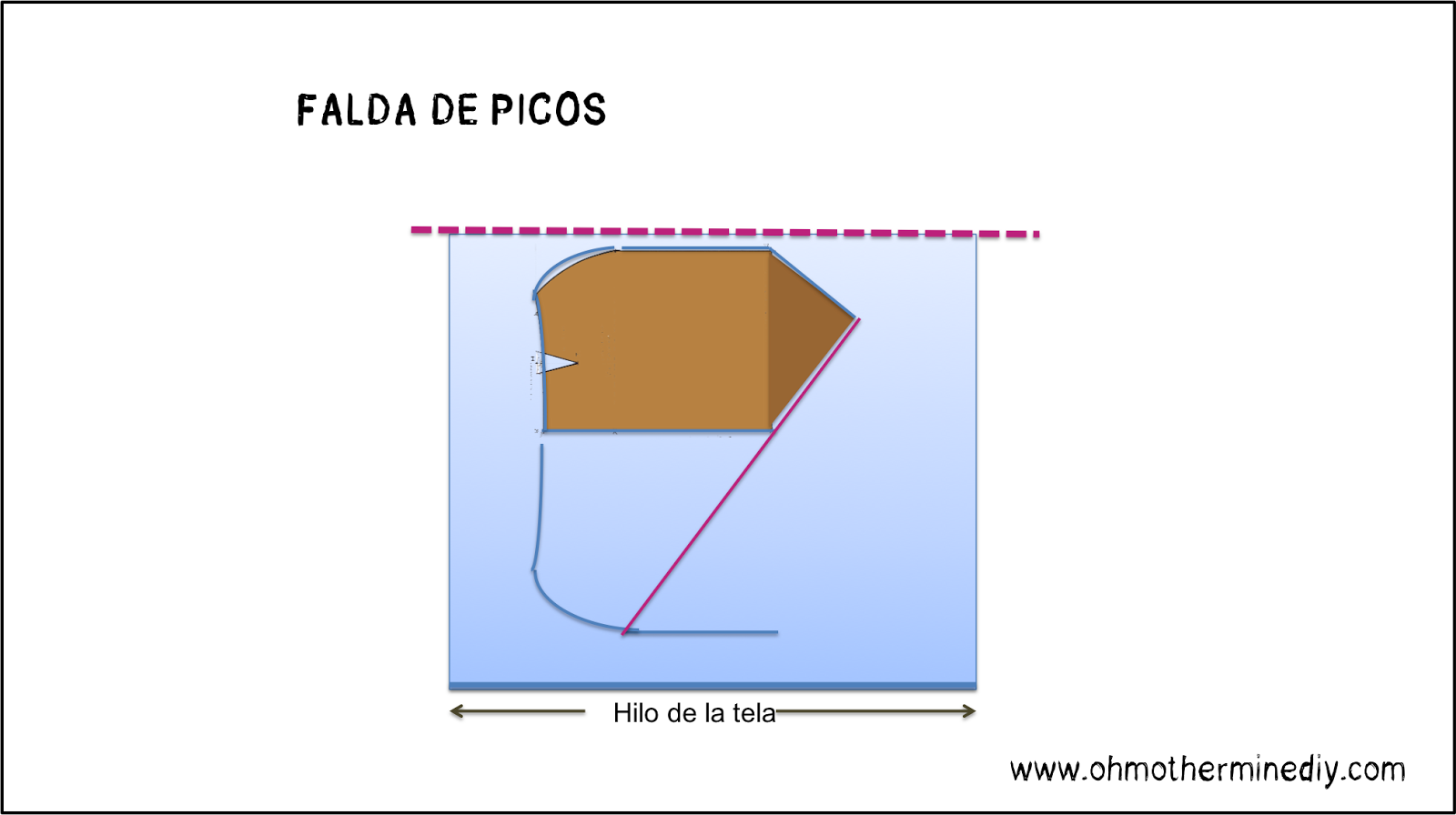 El patrón de la falda deberá ir paralelo a la dirección del hilo de la tela, como se aprecia en la imagen.