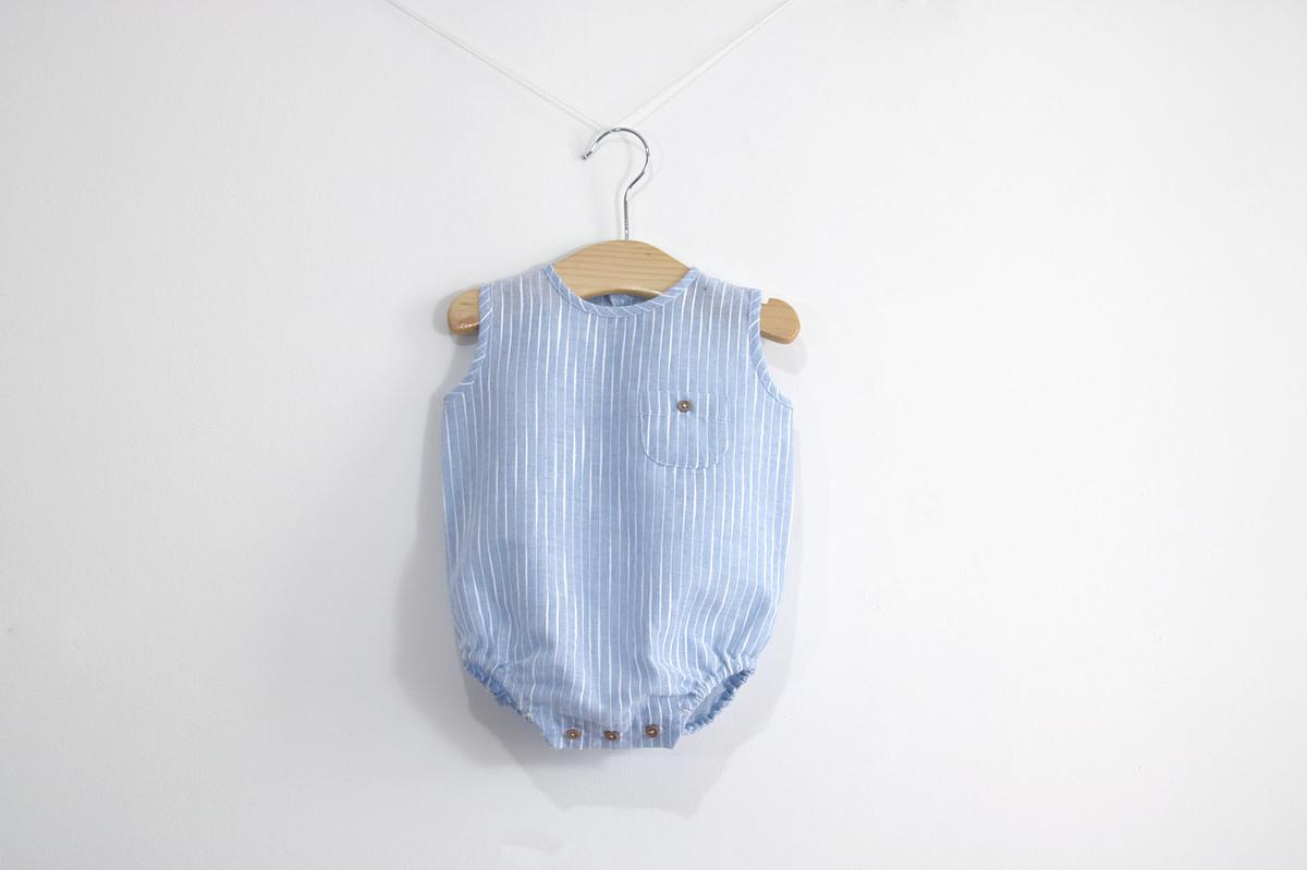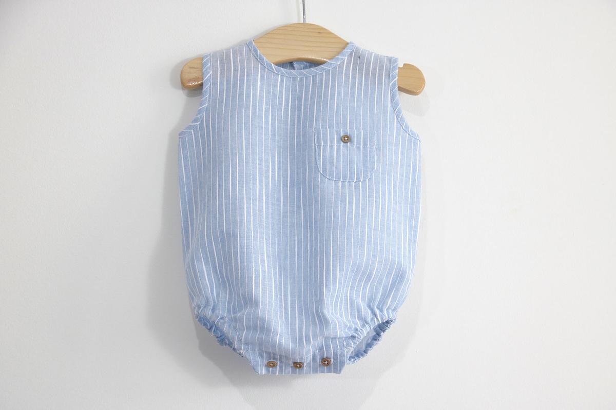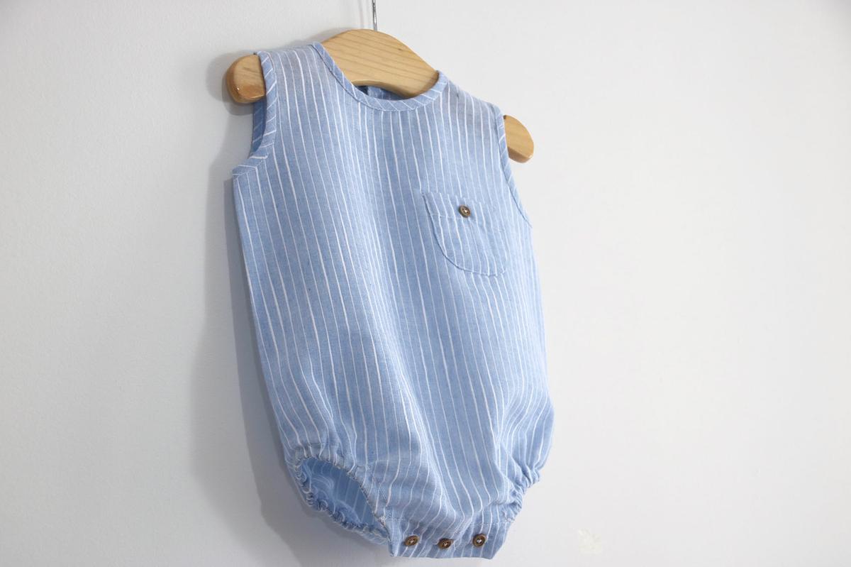 Como ya os comentaba, estaba editando cositas para los peques también y aquí tengo ya uno de los que veréis próximamente en el blog. Es un pelele para bebés hasta talla 24 meses, de lino en rayas. La verdad que es tendencia esta temporada, tanto la tela de lino como las rayas, sobretodo verticales.
