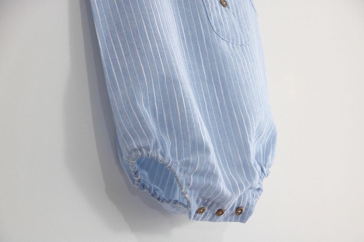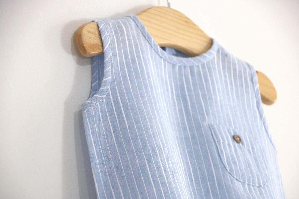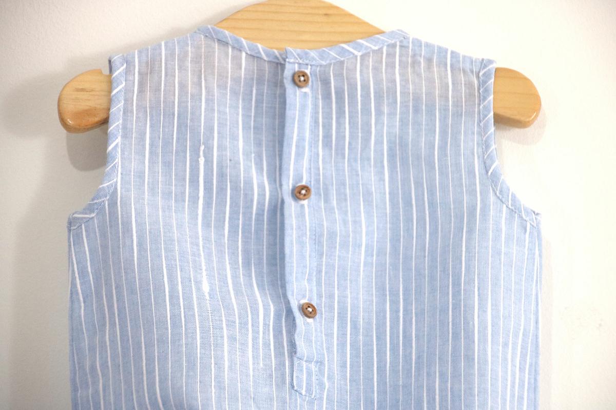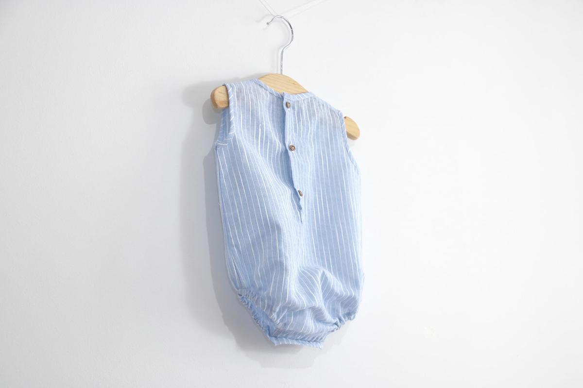 Como ya os comentaba, estaba editando cositas para los peques también y aquí tengo ya uno de los que veréis próximamente en el blog. Es un pelele para bebés hasta talla 24 meses, de lino en rayas. La verdad que es tendencia esta temporada, tanto la tela de lino como las rayas, sobretodo verticales.