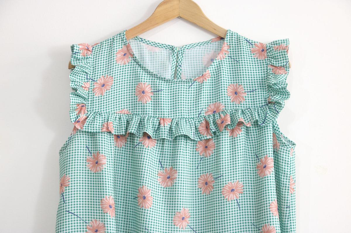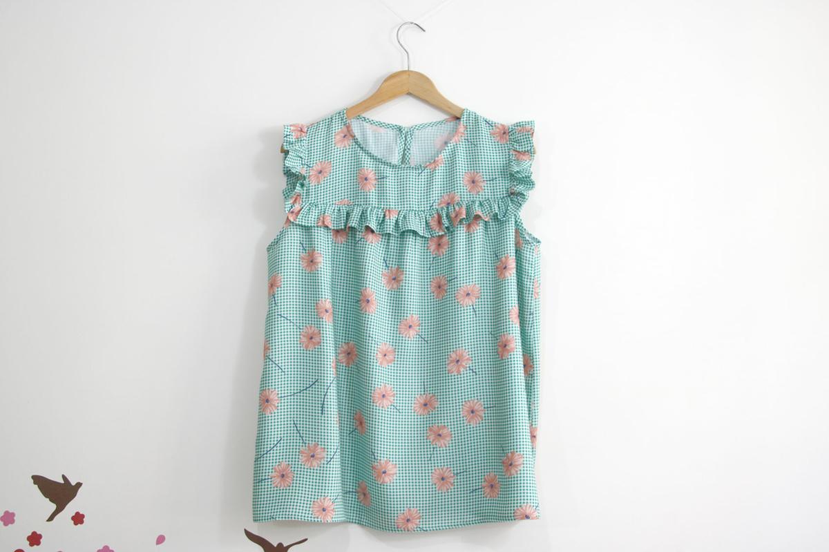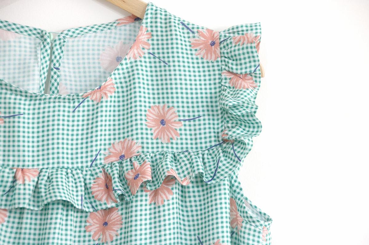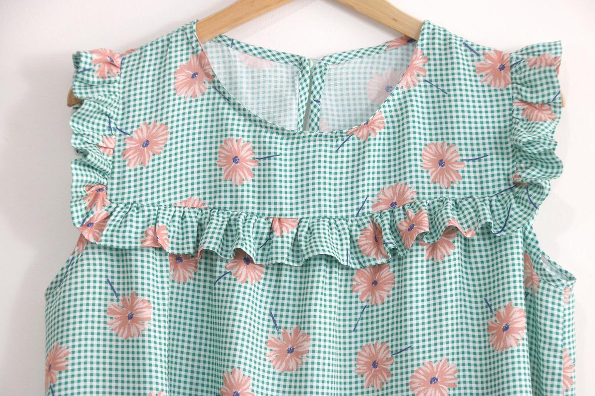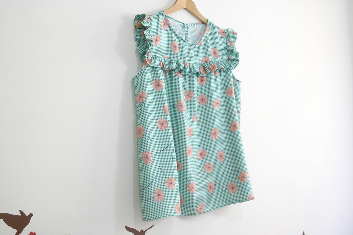 Bueno, hoy quería publicar esta blusa tan fácil y fresquita para mujer!!!! La verdad que no tiene dificultad ninguna a la hora de confeccionarla, y aunque creo que quedaría mejor en un popelín celeste o a rayas, lo hemos hecho en una viyela de cuadros vichy y estampado en flores para cambiar un poco