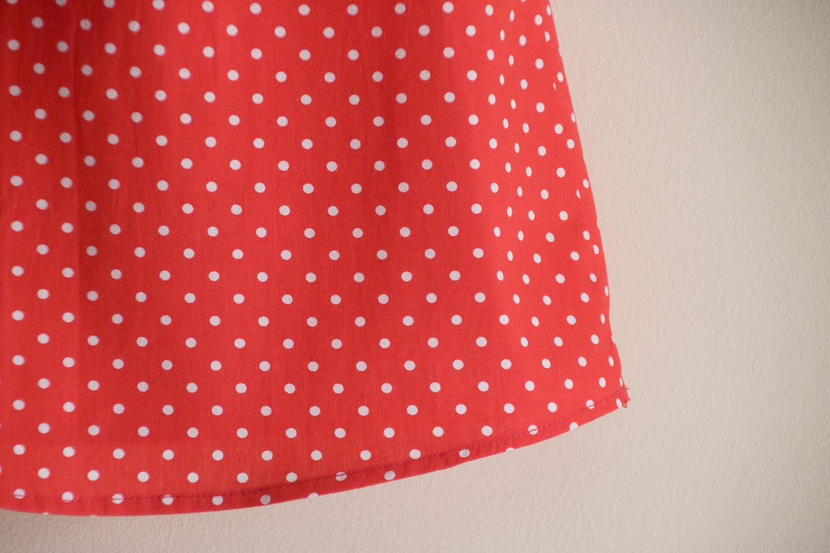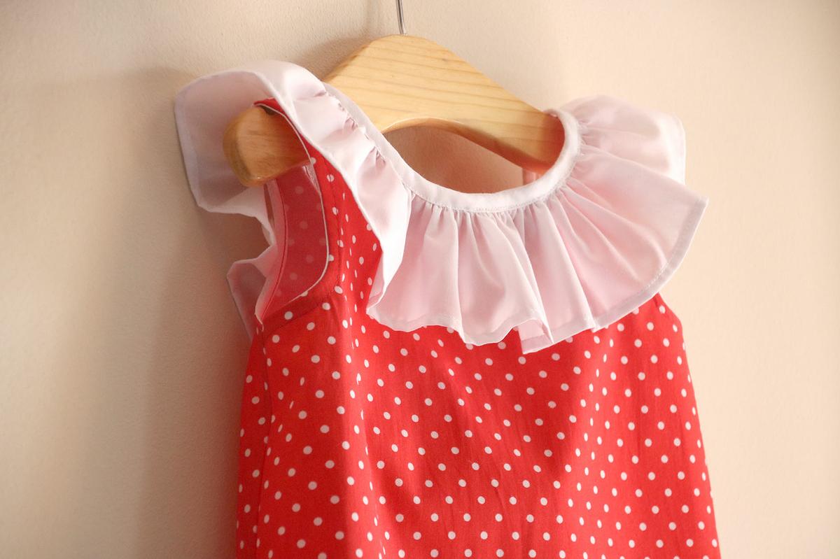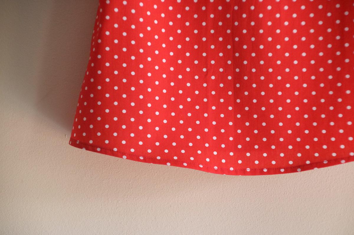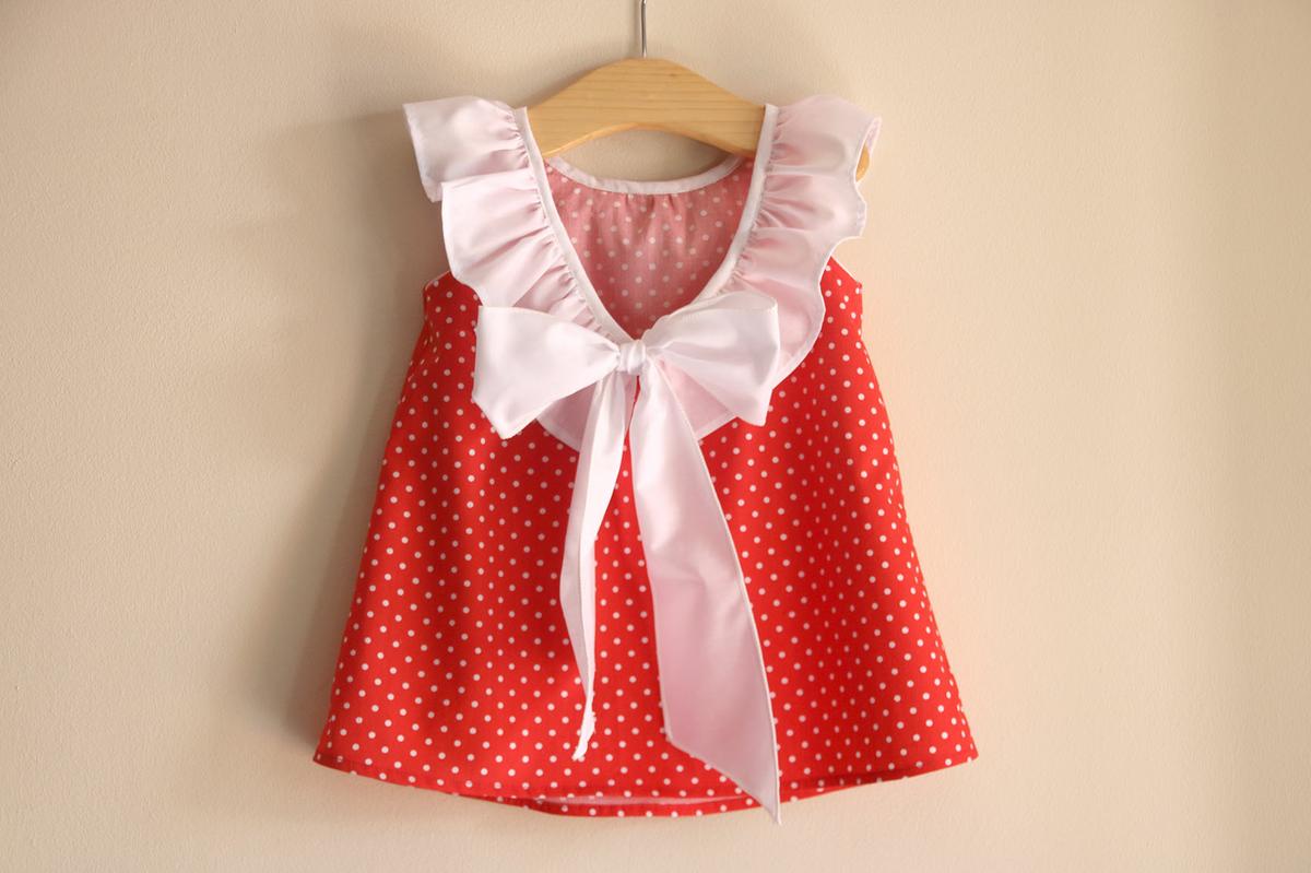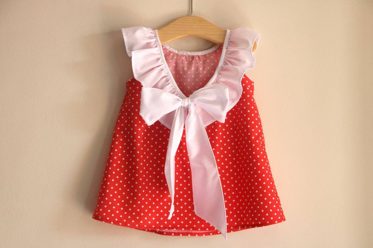 La tela que he utilizado para este proyecto es un popelín en rojo con topos blancos. Además la tela que he utilizado para el volante y el lazo, es también popelín pero en color blanco liso. Para este vestido podéis utilizar infinitas combinaciones que os van a quedar espectacular!!!! La tela que os recomiendo es algodón, aunque este vestido admite bastantes tipos de telas sobretodo infantiles.