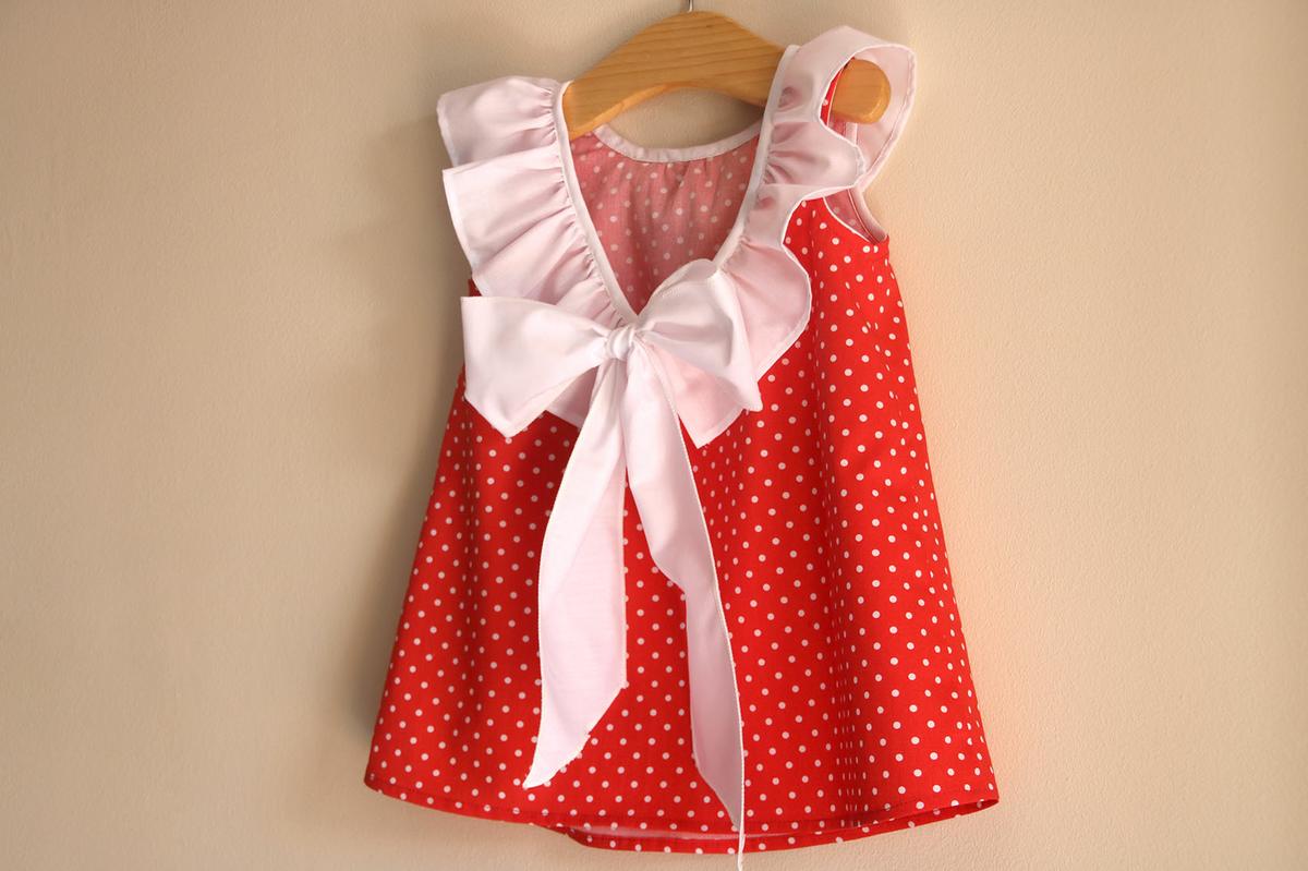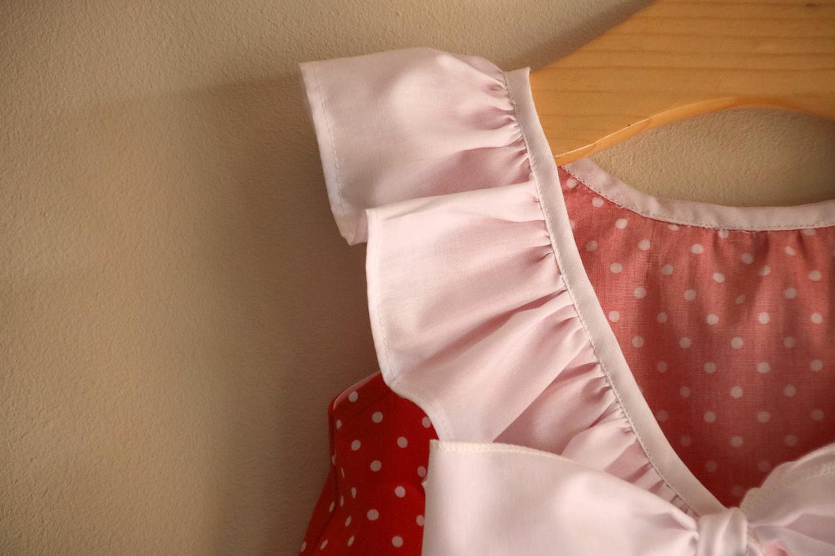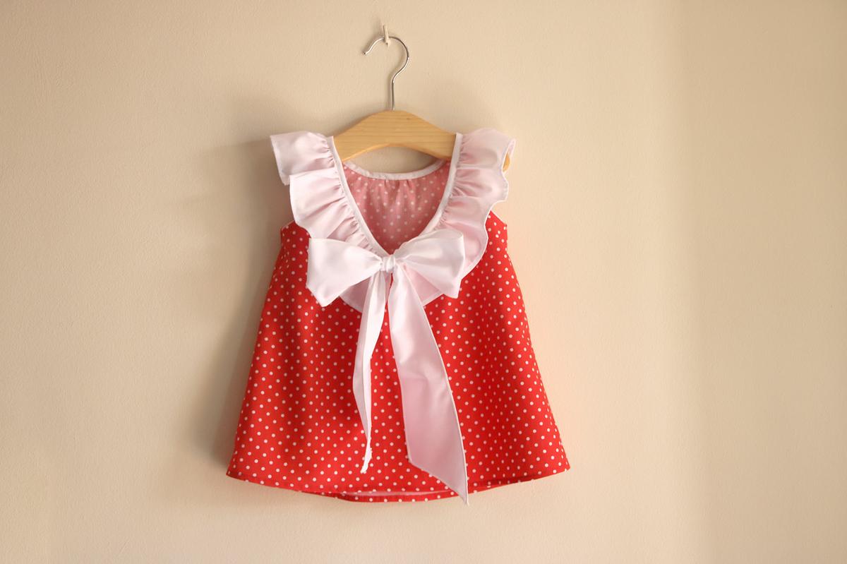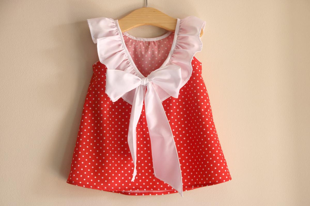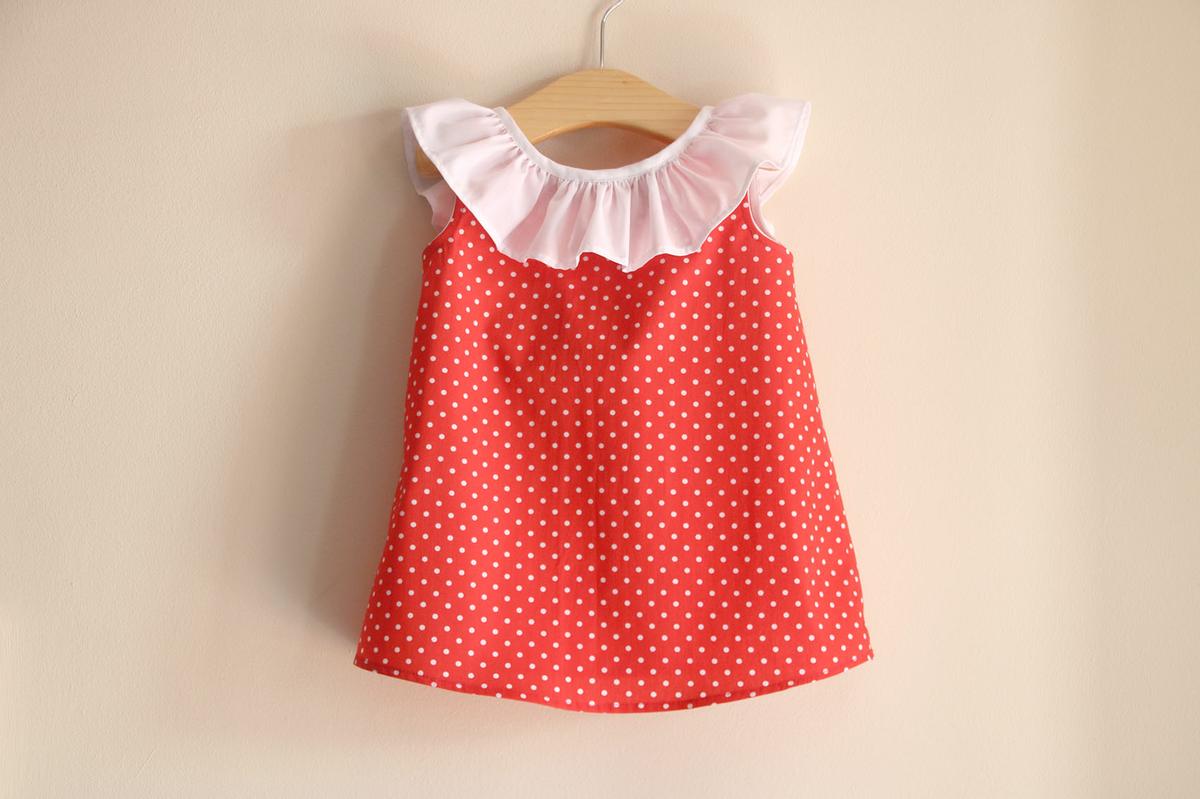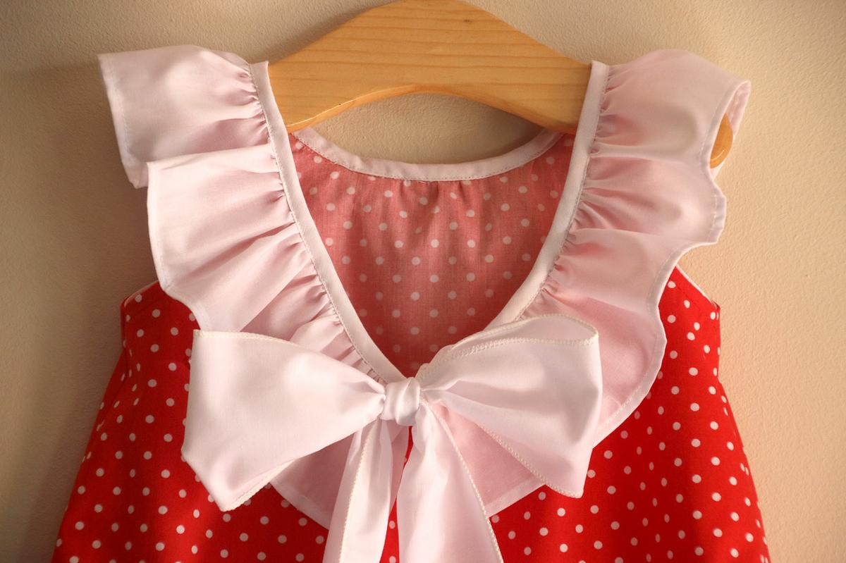 La tela que he utilizado para este proyecto es un popelín en rojo con topos blancos. Además la tela que he utilizado para el volante y el lazo, es también popelín pero en color blanco liso. Para este vestido podéis utilizar infinitas combinaciones que os van a quedar espectacular!!!! La tela que os recomiendo es algodón, aunque este vestido admite bastantes tipos de telas sobretodo infantiles.