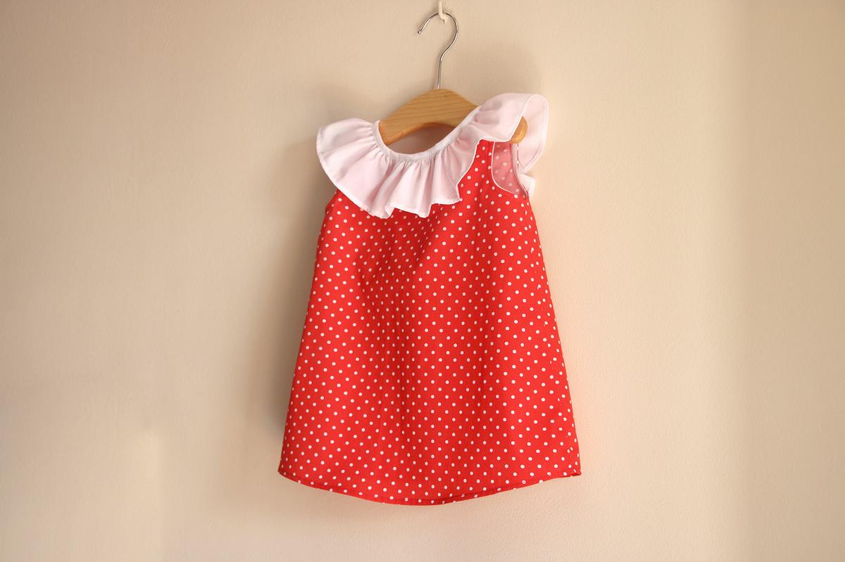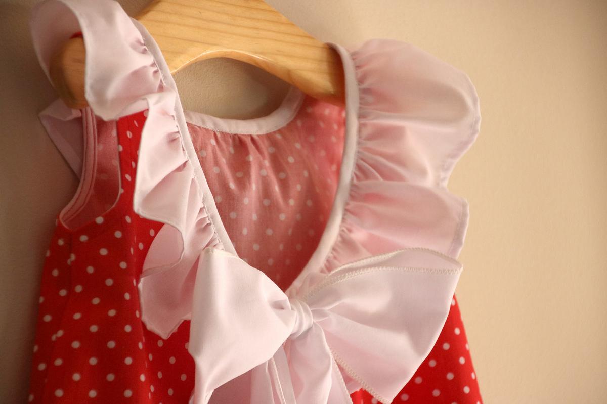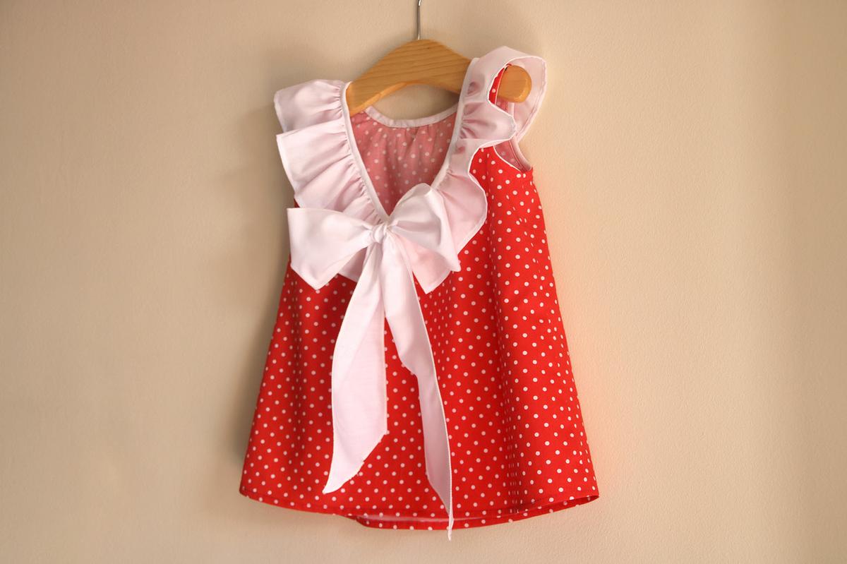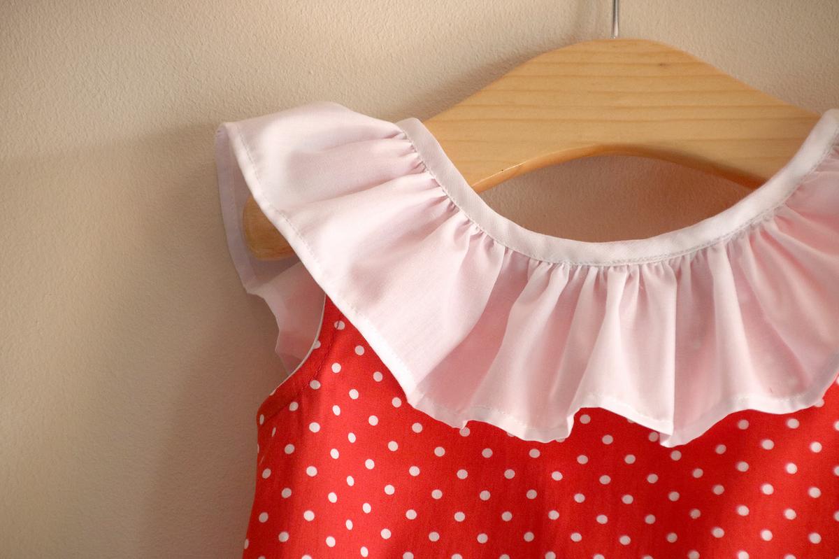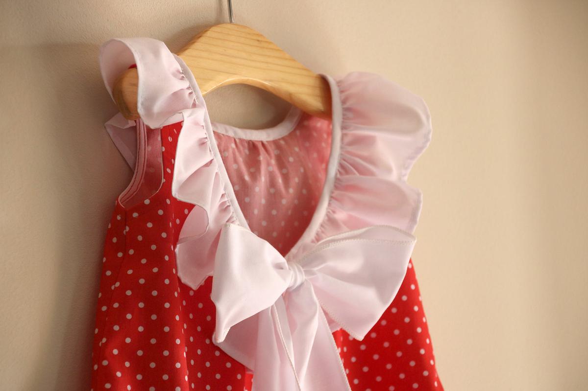 La tela que he utilizado para este proyecto es un popelín en rojo con topos blancos. Además la tela que he utilizado para el volante y el lazo, es también popelín pero en color blanco liso. Para este vestido podéis utilizar infinitas combinaciones que os van a quedar espectacular!!!! La tela que os recomiendo es algodón, aunque este vestido admite bastantes tipos de telas sobretodo infantiles.