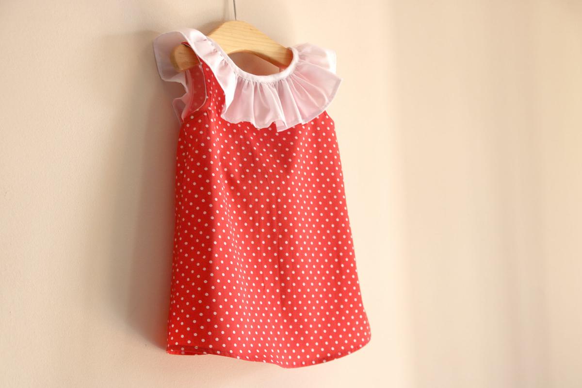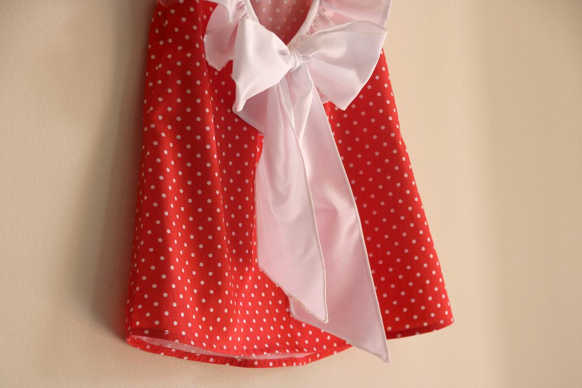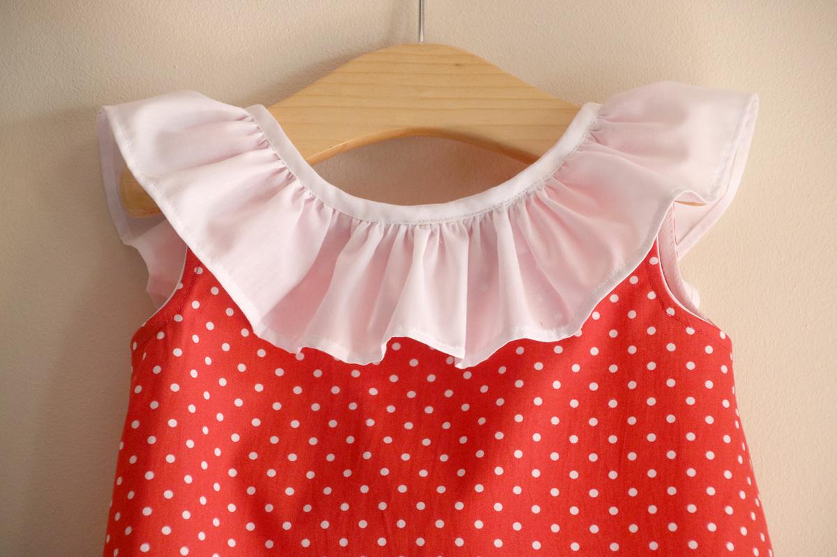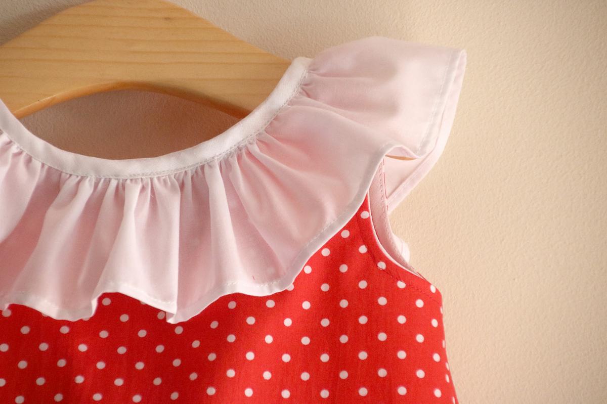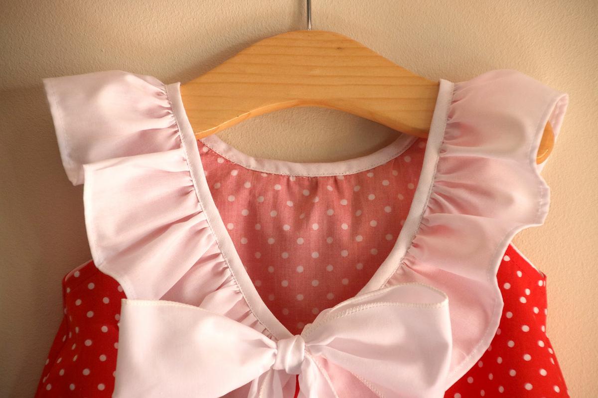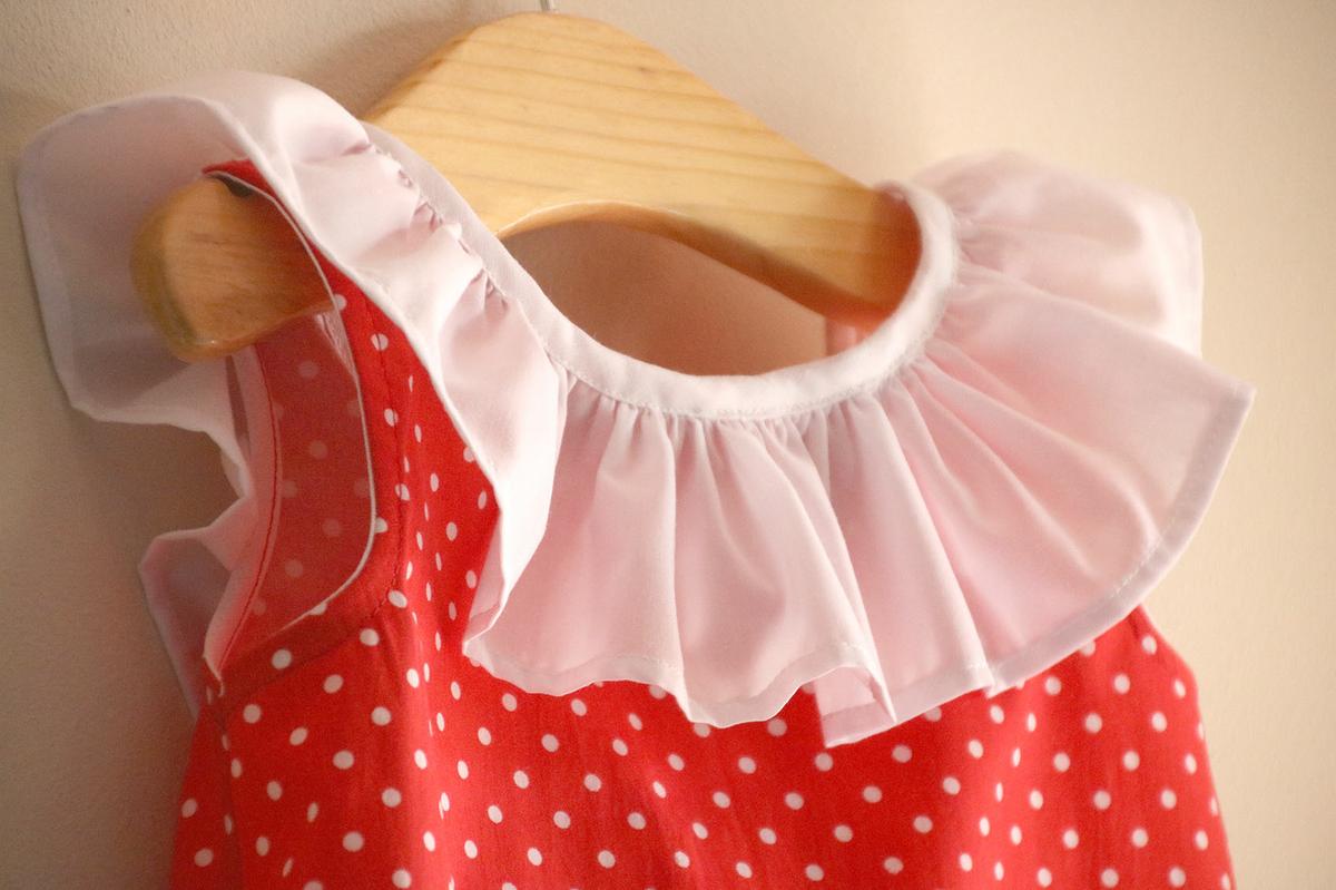 La tela que he utilizado para este proyecto es un popelín en rojo con topos blancos. Además la tela que he utilizado para el volante y el lazo, es también popelín pero en color blanco liso. Para este vestido podéis utilizar infinitas combinaciones que os van a quedar espectacular!!!! La tela que os recomiendo es algodón, aunque este vestido admite bastantes tipos de telas sobretodo infantiles.
