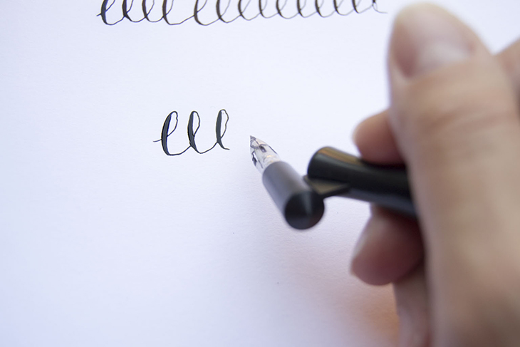 -Plumillas. Las hay de diferentes tipos. Son más o menos flexibles y eso es lo que hará que haya más diferencia entre los trazos finos y gruesos. Básicamente tenemos que ir suave cuando trazamos una letra hacia arriba y apretar un poco al ir hacia abajo. Al presionar, las dos partes que componen la punta de la plumilla se separan, produciendo ese trazo más grueso que queda tan bonito.