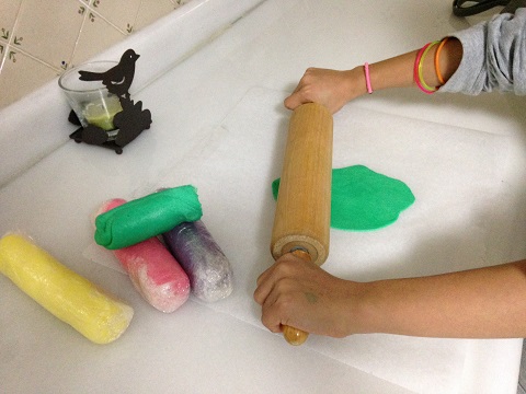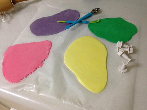 Mientras subían, fuimos preparando el fondant para la decoración. Mis sabias compañeras me recomendaron una panadería en la que fabrican ellos mismos el fondant y te lo tiñen del color que quieras, siendo más natural y sabroso al comerlo, y allí lo compré ¿os gustan los colores que elegimos?