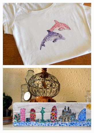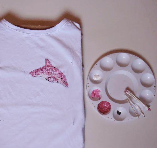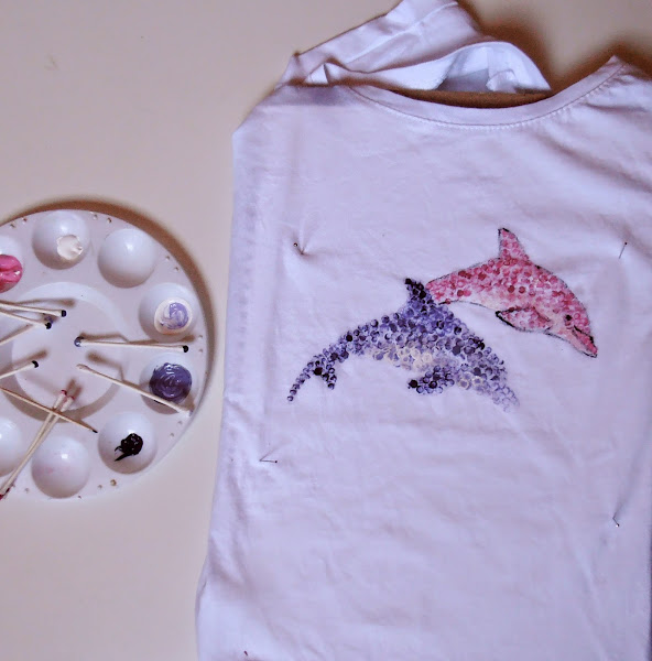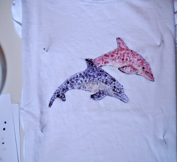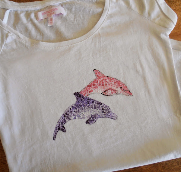 Con el segundo delfín, he mezclado violeta, con blanco y gris.