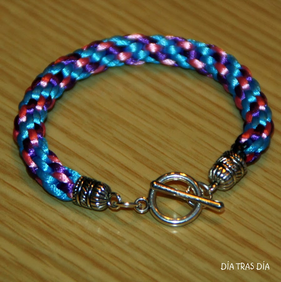Pero resultó que mis hijos cuando me vieron hacerlo, quisieron probar a hacerlo ellos también. Les expliqué cómo se hacía y en un momento pillaron la técnica. Así que se apoderaron del disco y empezaron a hacer pulseras para todo el mundo ;-). Tanto es así que aprovechando que fue el cumpleaños de Abel hace pocos días, le regalamos un disco kumihimo para él, que comparte con su hermano.
