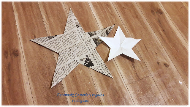 Para la estrella cortamos primero un molde en papel, paso a paso te voy indicando como hacerlo...