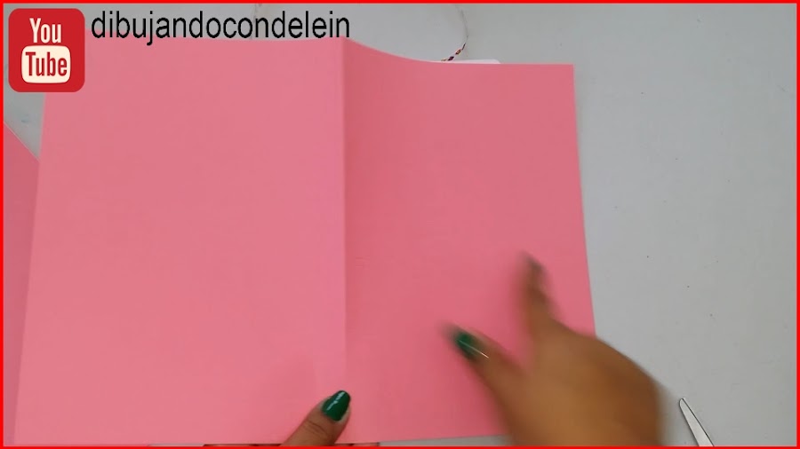 Tomamos el papel de color o la cartulina y la cortamos del mismo alto de las hojas de la libreta y el doble del ancho, vamos a cortar 2 de estas