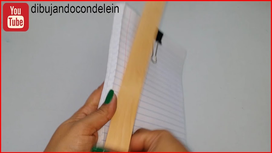 Ahora vamos a colocar pega o cola blanca a lo largo del costado de la libreta, esto lo vamos a hacer tanto en la parte delantera como en la parte posterior de nuestras hojas así como se muestra en la imagen,