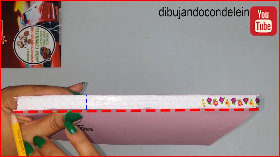 como a nuestras hojas les colocamos una pieza de cartulina en el frente y en la parte posterior en alto de nuestra nueva libreta va a ser un poco mayor al alto de la libreta original, la caratula usada la vamos a tener que colocar abierta sobre la mesa y marcarle las medidas de nuestra nueva libreta tal y como se muestra en la imagen,