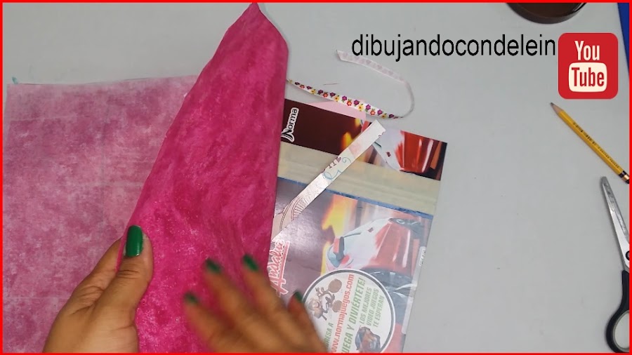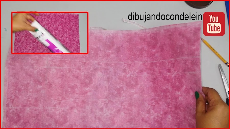 Ahora le voy a colocar peca en los contornos y voy a doblar hacia adentro y me voy a asegurar que todo quede bien pegado, sin arrugas ni exceso de pega, aqui tambien me voy a ayudar con la tablitta de madera.