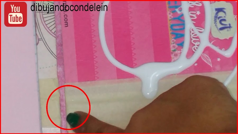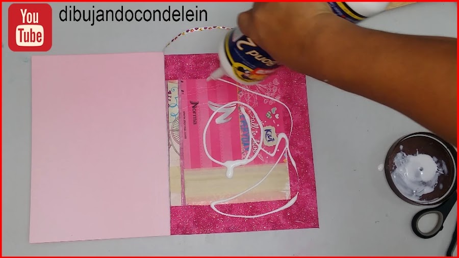 Esta pieza la vamos a colocar de manera tal que cuando estemos colocando la pega en el lado siguiente, nos aseguremos que las hojas de la libreta como tal no se van a llenar de pega, luego procedemos a colocar pegamento tal y como lo muestran las imágenes.