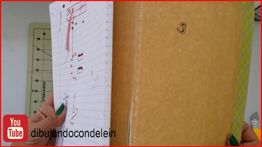 Una vez que ta tengo mi caratula lista y seca voy a proceder a pegarle la parte interna de mi libreta.