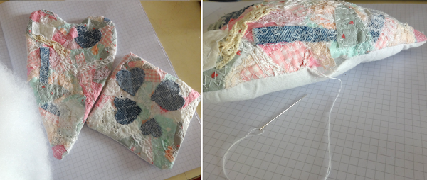 Giramos, rellenamos y cerramos la pieza con una costura invisible, también he hecho el pequeño cojín cuadrado y es que he decidido que fluyan todas las ideas y materiales que tengo en casa