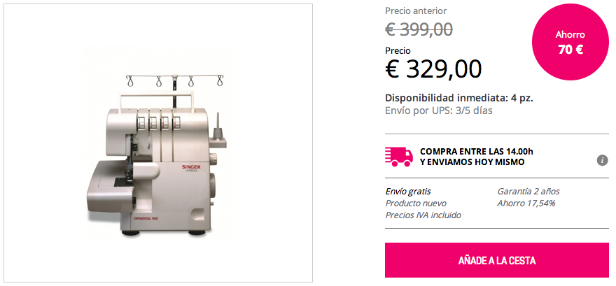 Por ejemplo, Shopty es una tienda online de máquinas de coser, bordadoras, overlock y mercería. Yo he fichado algunos productos que os pueden interesar, por ejemplo, máquinas de coser SINGER buenas y económicas para principiantes.