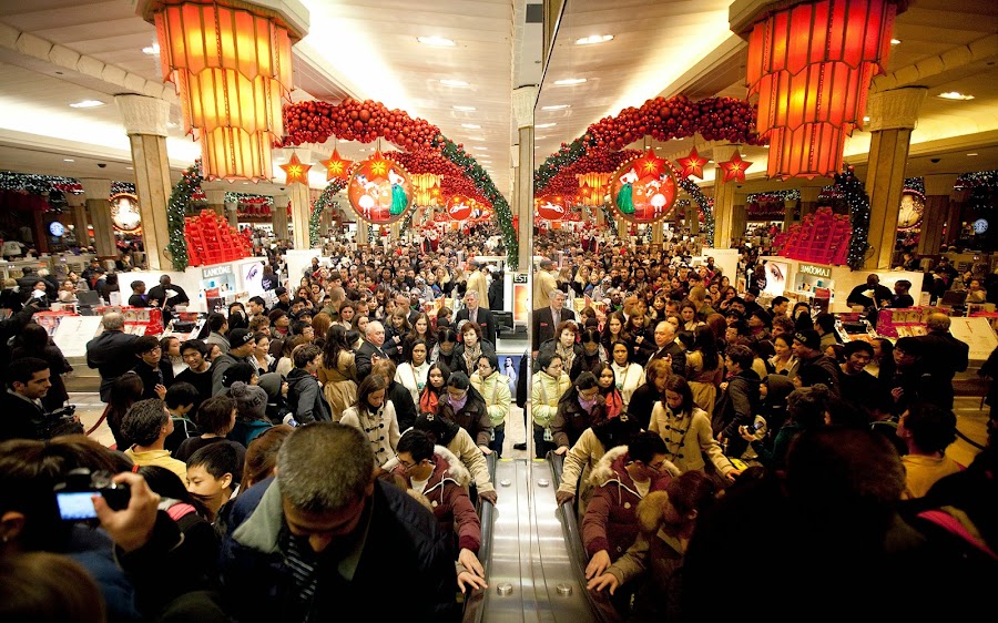 Cuando se termina de cenar se suele ir pronto a la cama, porque esa misma noche, la noche del jueves al viernes ya comienzan las mejores rebajas del país. Las tiendas, comercios y centros comerciales suelen abrir desde las 3 ó 4 de la madrugada, y las mejores ofertas se encuentran en las primeras horas. Es decir, por ejemplo H&M comienza con rebajas del 70% desde las 4 a.m hasta las 6 a.m, luego del 50 desde las 6 a.m hasta las 8 a.m y finalmente se queda con sus rebajas del 30% ya en adelante. Digamos que es el comienzo oficial de las rebajas en EEUU.