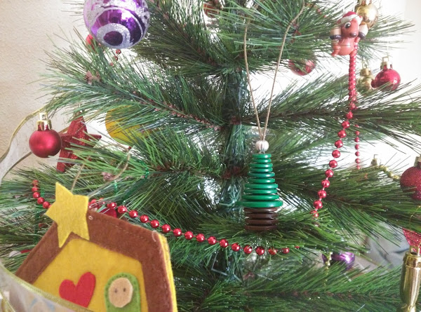 Tengo muchos botones y de muchos tamaños y como no sabía que hacer con ellos he hecho figuritas para el árbol. Solo necesitas: