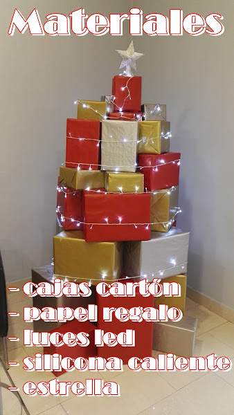 Consigue muchas cajas de cartón....pero muchas y las envuelves con el papel de regalo que más te guste, yo escogí tres colores muy navideños y me puse al lío, ten un poco de paciencia porque es muy entretenido jajaja.