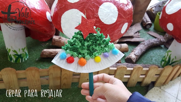 - Un plato de cartón que lo corté en cuatro trozos, y cada trozo era para el árbol de Navidad.
