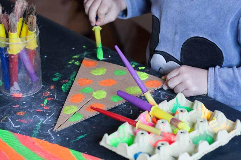 Para decorar el árbol de navidad usaremos en primer lugar las témperas de colores ya que tendremos que dejarlas secas un rato. Dejad a vuestro pequeño o pequeña que pinte el árbol de los colores que quiera, que lo interprete a su manera así que no te sorprendas si lo pinta de color azul o rosa. La esencia de este tipo de actividades es que el niño o la niña exprese de una forma natural y sin límites su percepción de los cosas.