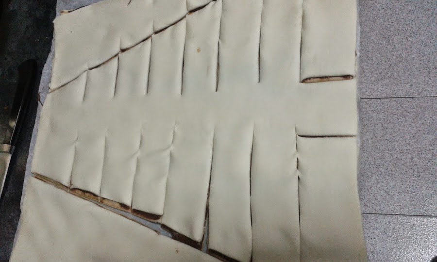 Como veis yo aproveché los recortes para hacer rollitos pero los dos más grandes se quedaron un poco crudos por el centro. Así que mejor haced rollitos pequeños ;)