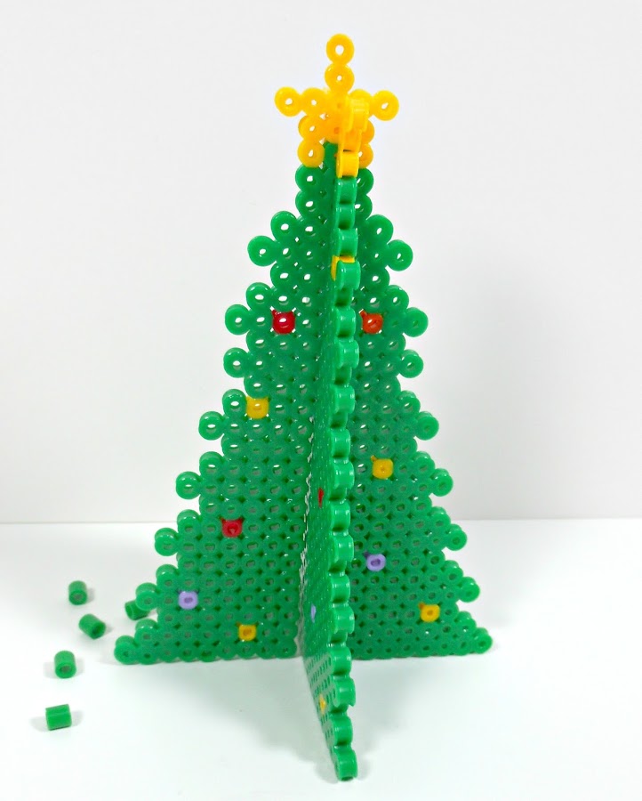 Los materiales que necesitamos son una placa para hamabeads midi, que son para las cuentas de 5mm y hamabeads verdes. Para la estrella necesitaremos algunas cuentas amarillas y para decorar, algunas cuentas de diferentes colores diferentes de verde. Además para sellar la figura necesitaremos papel de horno y una plancha.