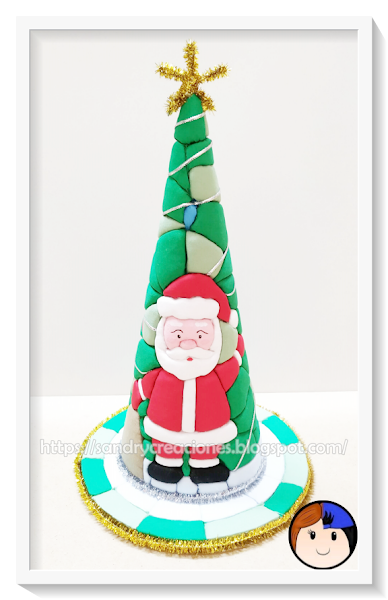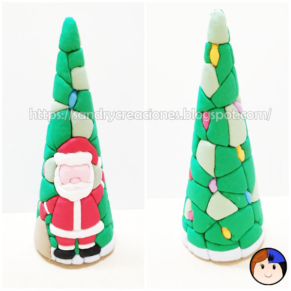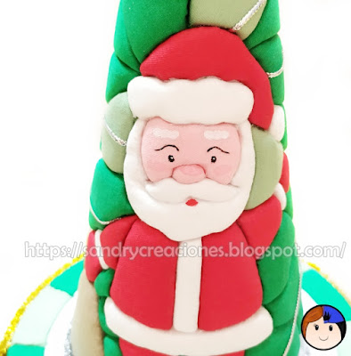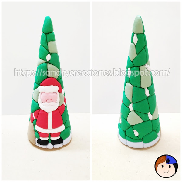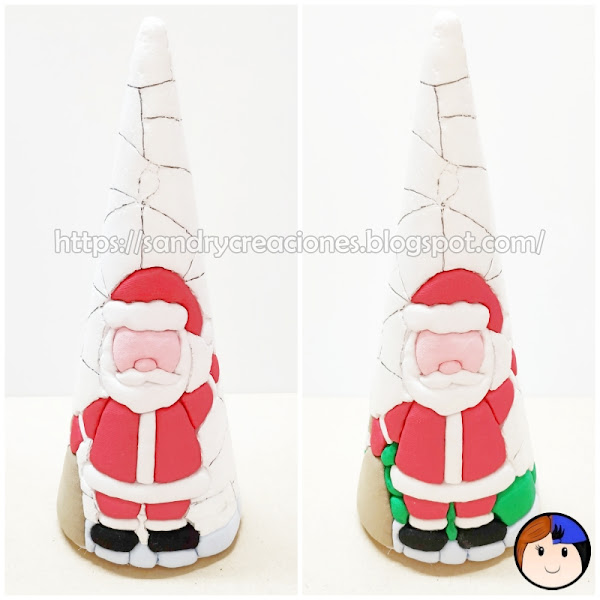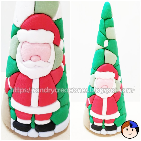 Para dar por finalizado el árbol le pintamos la carita a Papá Noel o Santa Claus con la ayuda de pintura para tela.