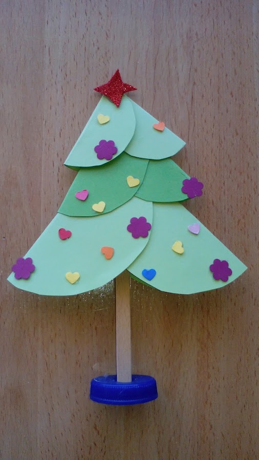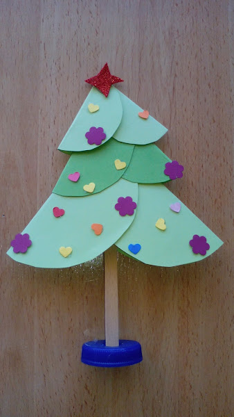 Tengo que pensar que sea fácil para ellos que ahora tienen cuatro años, esto quiere decir que no sea yo la que lo haga todo, aunque si que es verdad que a esta edad hay que facilitar mucho las cosas para que ellos pongan su granito de arena en la manualidad. He pensado (de momento) en hacer un árbol de navidad y este me parece adecuado para que ellos me ayuden y pongan los adornos.