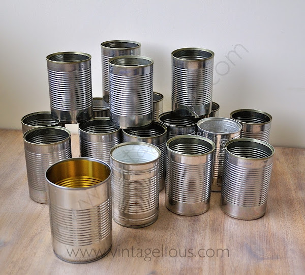 Necesitamos 15 latas del mismo tamaño y 1 un poco mayor. Si no disponéis de tantas latas iguales, también podéis utilizar latas de refrescos que seguro que usareis más.