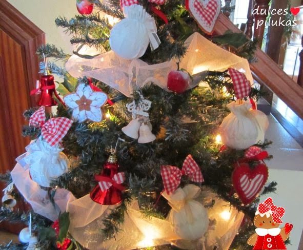 del taller de navidad, los lacitos vichy y el tul que he puesto alrededor,