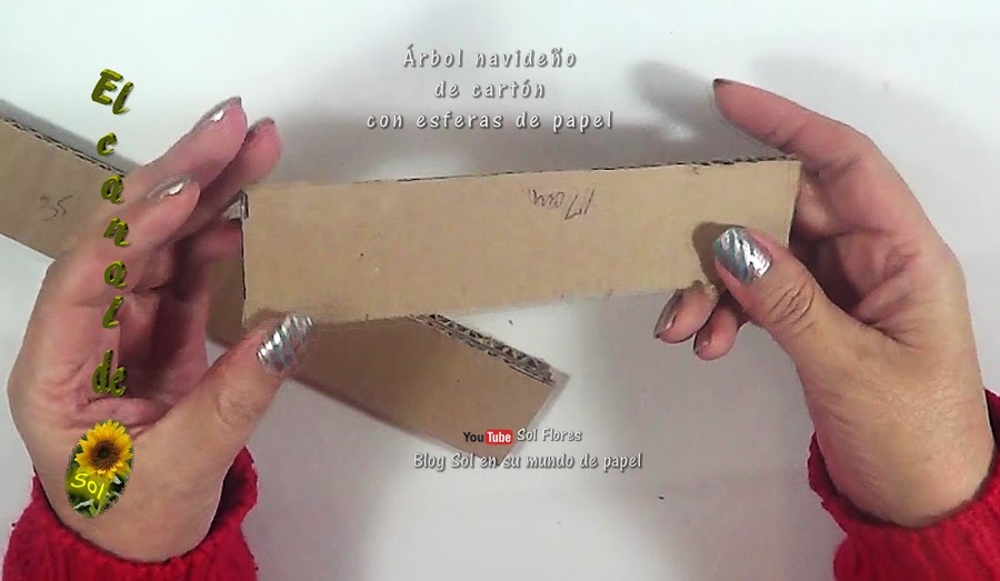 Cortamos tiras de cartón de 4 cm. de ancho, dos de 35 cm. de largo y una de 17 cm. de largo