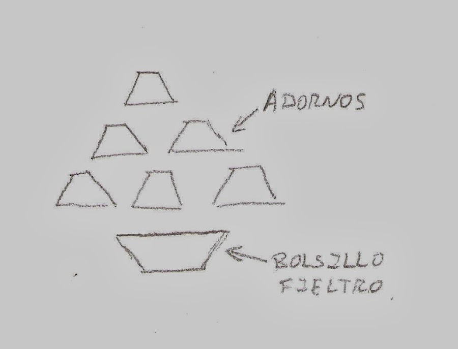 Qué no tienes espacio para poner un árbol de Navidad? No hay problemas Cosas de Loly te da una idea: Sobre un corcho de esos de pinchar notas pones un papel o una tela roja o verde de fondo y vas pinchando los adornos en forma piramidal. La base cortas un trapecio de fieltro marrón que lo pondrás como base del árbol. Si lo pinchas entero sólo será la base, pero Cosas de Loly te aconseja que sólo sujetes los extremos laterales y el de abajo para hacer como un bolsillo y ahí poder guardar las tarjetas y felicitaciones que todavía nos llegan por estas fechas.