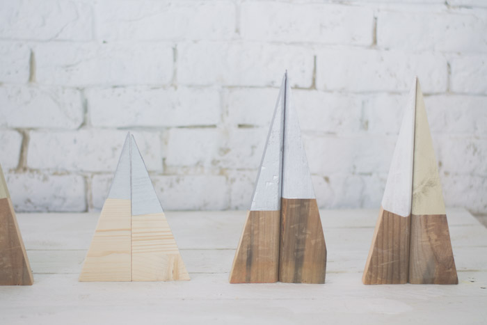De los trabajos realizados este verano, siempre nos iban sobrando retales. A mi que me gusta aprovecharlo todo, vi en estos triángulos de madera, los perfectos mini árboles de Navidad.
