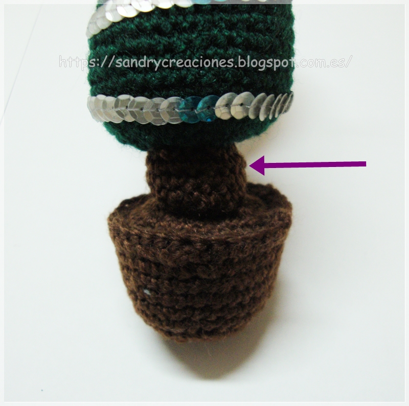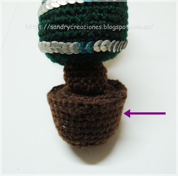Una vez decorado el arbolito, seguimos tejiendo lo que sería la tierra de la maceta.