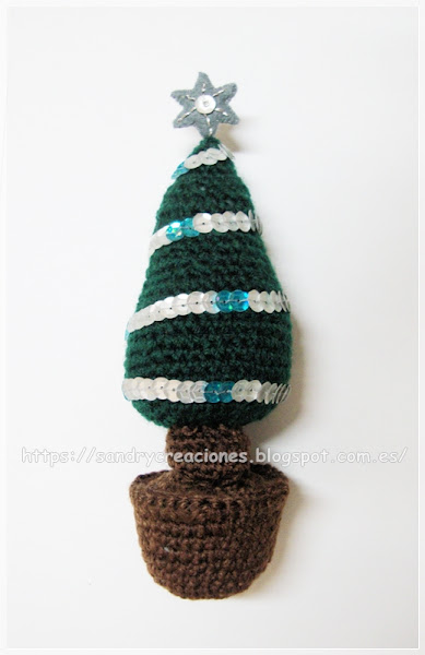 Este tipo de árbol es un tipo de patrón muy sencillo que como ya os he comentado elaboré yo pero más adelante encontré uno que enseñaban a hacer en la web "Tejiendo Perú" y también lo realicé pero añadiendo la parte del tronco y la tierra para la maceta.